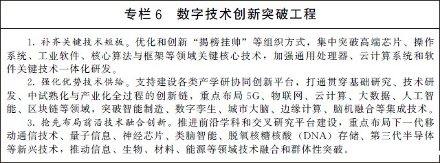 (一)增强关键技术创新能力。瞄准传感器、量子信息、网络通信、集成电路、关键软件、大数据、人工智能、区块链、新材料等战略性前瞻性领域,发挥我国社会主义制度优势、新型举国体制优势、超大规模市场优势,提高数字技术基础研发能力。以数字技术与各领域融合应用为导向,推动行业企业、平台企业和数字技术服务企业跨界创新,优化创新成果快速转化机制,加快创新技术的工程化、产业化。鼓励发展新型研发机构、企业创新联合体等新型创新主体,打造多元化参与、网络化协同、市场化运作的创新生态体系。支持具有自主核心技术的开源社区、开源平台、开源项目发展,推动创新资源共建共享,促进创新模式开放化演进。